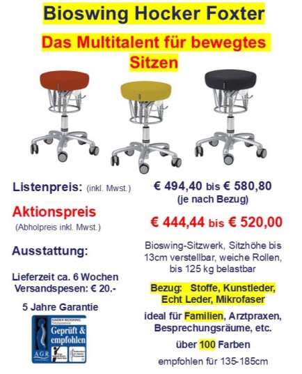 - Abverkauf von Präsentationsstühlen und gebrauchten Bioswing-Stühlen und Hockern