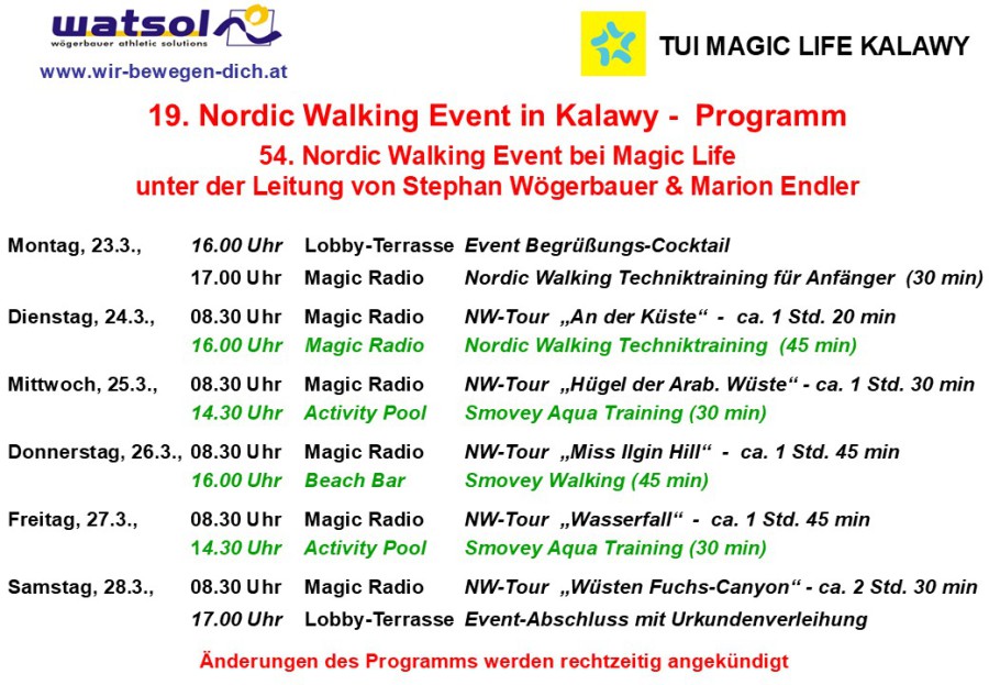 2026 finden zwei weitere Nordic Walking Events in den Magic Life-Clubs unter der Leitung von Stephan Wögerbauer und Marion Endler statt - diesmal wieder im Club Kalawy in Ägypten: