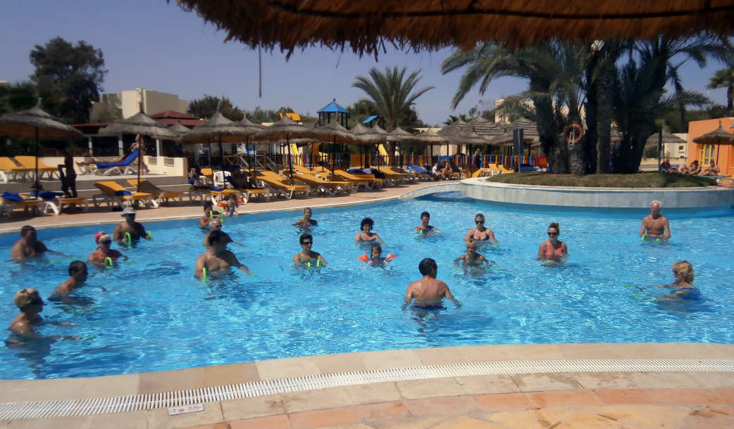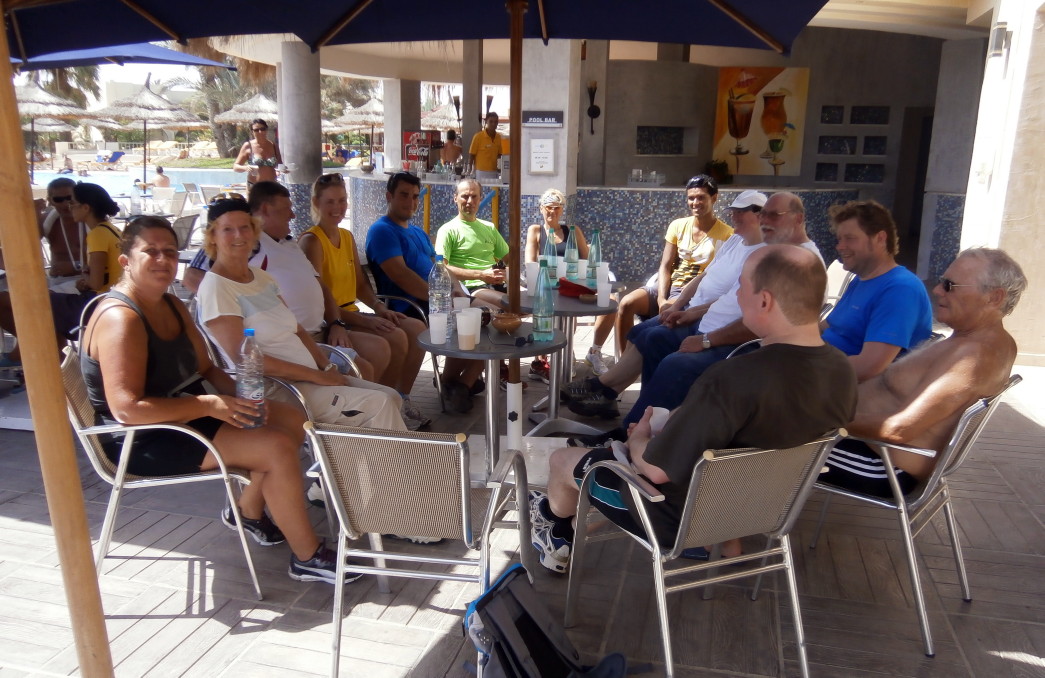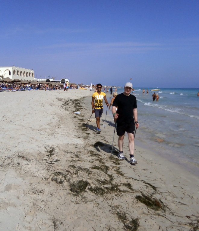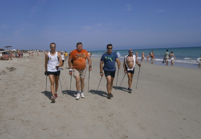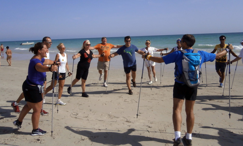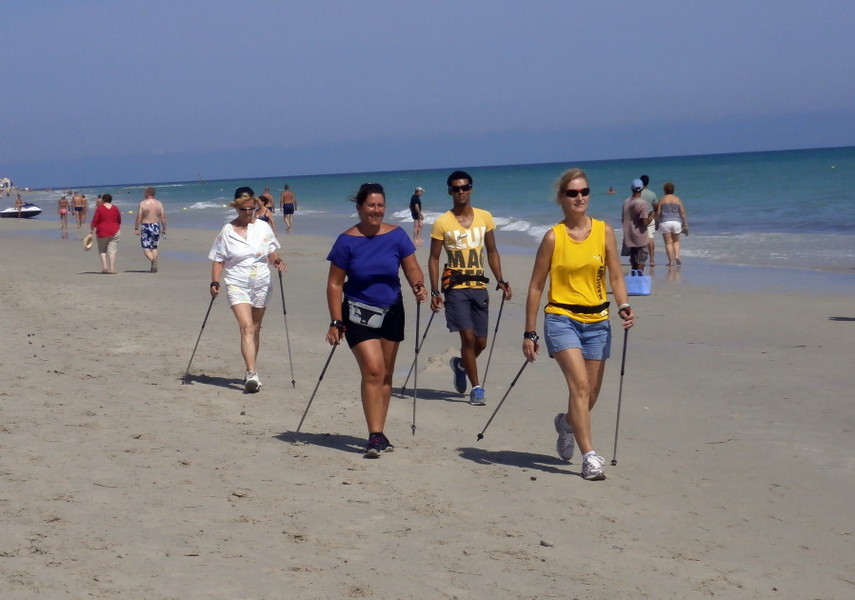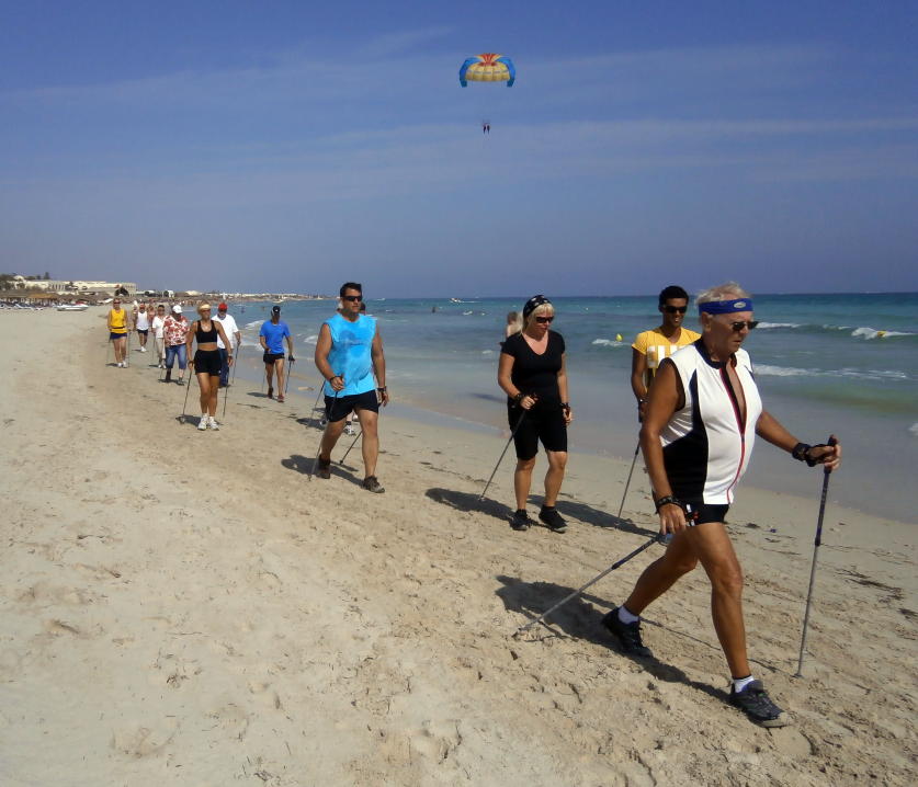 Wie bei allen Nordic Walking Events auf Djerba wurde das Training am Strand durchgeführt. Leider wurde durch Aufschüttungen der noch im Frühjahr herrlich flache Strand für uns Walker etwas "verunstaltet". Die vielen Pferd- & Kameltreiber, Tuch- und Sonstiges-Verkäufer, machten uns das Walken schwerer als gewohnt. Dennoch: Trotz Hitze und hoher Luchtfeuchtigkeit waren unsere Gäste mit großer Begeisterung dabei.