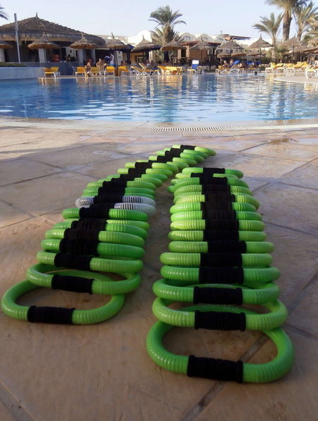 Bei den Smovey-Trainings gab es viele eifrige Teilnehmer, die die Wirkung der grünen Ringe "zu Lande" und "zu Wasser" erleben konnten. Auch von diesen Trainings haben wir Fotos beigelegt.