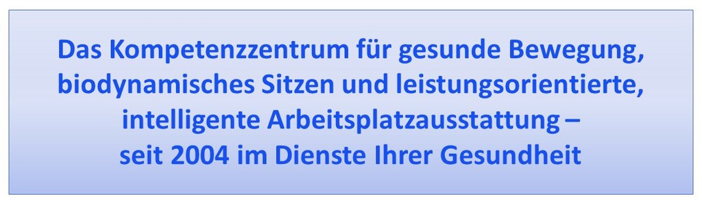 Das Kompetenzzentrum für gesunde Bewegung, biodynamisches Sitzen und leistungsorientierte, intelligente Arbeitsplatzausstattung - seit 2004 im Dienste Ihrer Gesundheit